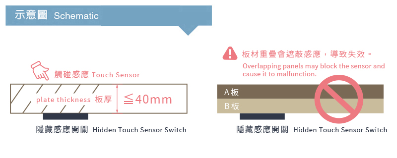 | 感應板厚距離需≦ 40mm | ||